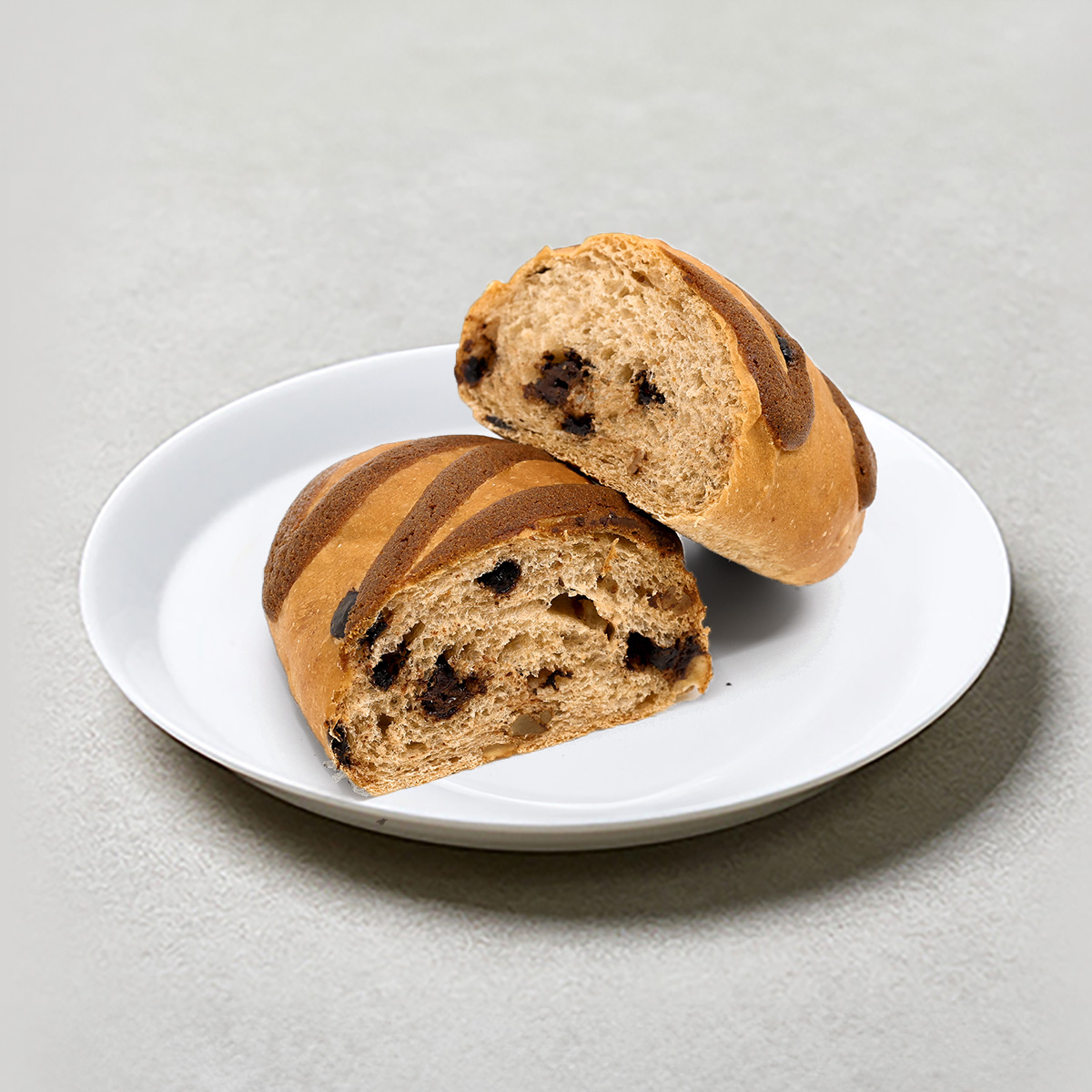 Soft loaf with chocolate chips, crispy coffee swirls, and walnuts for a rich, textured bite.